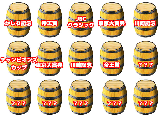 出走の可能性があるレースは、川崎記念、フェブラリーS、かしわ記念、帝王賞、南部杯、JBCクラシック、チャンピオンC、東京大賞典と年間8レースある。